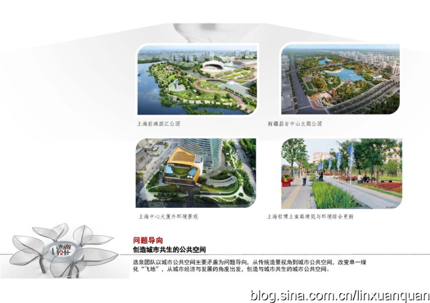 --------上 海 選 泉 設(shè) 計(jì)--------- m.haowanbulei.com 400-021-4866 blog.sina.com.cn / linxuanquan 精專小 美 無 為 景 觀 風(fēng)景園林︱景觀設(shè)計(jì)︱ 城市設(shè)計(jì)︱ 城市家具 landscape Architecture Planning and Design Architectural Design Urban Furniture Design 上海世博會(huì) 陸家嘴金融城更新 上海中心大廈外環(huán)境 公共空間總設(shè)計(jì) & 公共街具智造 Email:design@ linoliu.com QQ:2644105441 TEL:86-021-51796296
