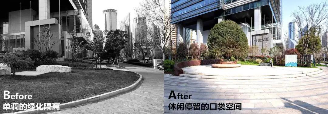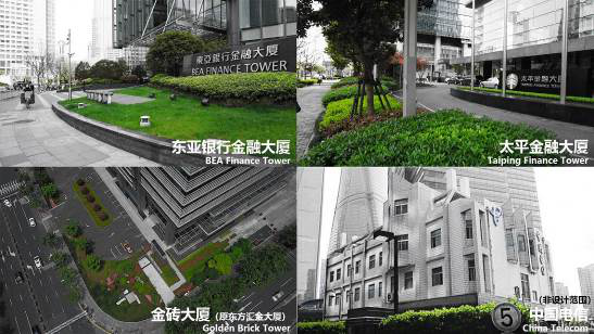 2、同利益方的要求不同。地塊內(nèi)的公共空間是通過地塊共享、集約、置換等方式“擠”出來的,因此方案針對(duì)的業(yè)主就有政府管理部門,大廈物業(yè)方(國企和外資),需要協(xié)調(diào)他們不同的需求,有的希望保持防護(hù)綠化的現(xiàn)狀,安全且便于管理。有的希望方案有所突破,而城市管理部門傾向于后期方便管理和養(yǎng)護(hù)。