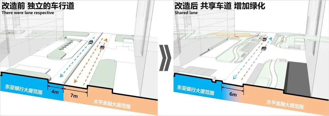 ▼改造后位于太平金融大廈及金磚大廈之間的共享車道©選泉設(shè)計(jì)