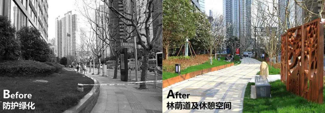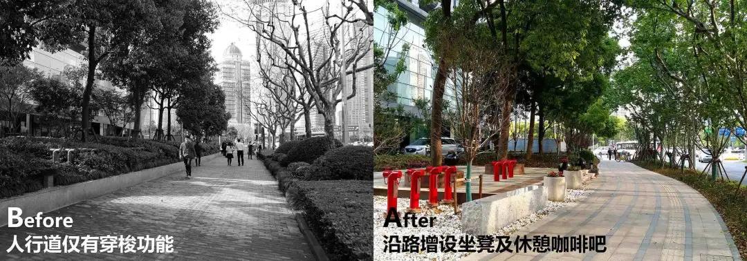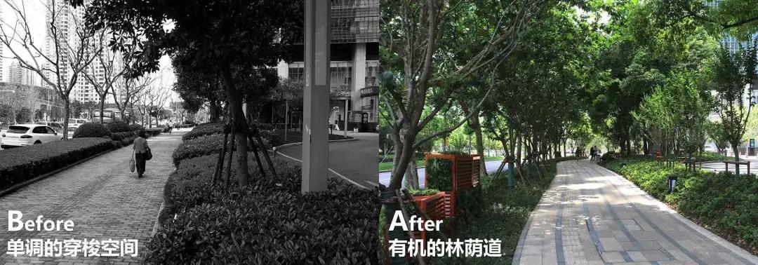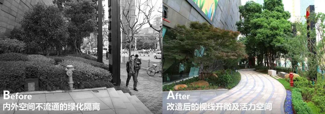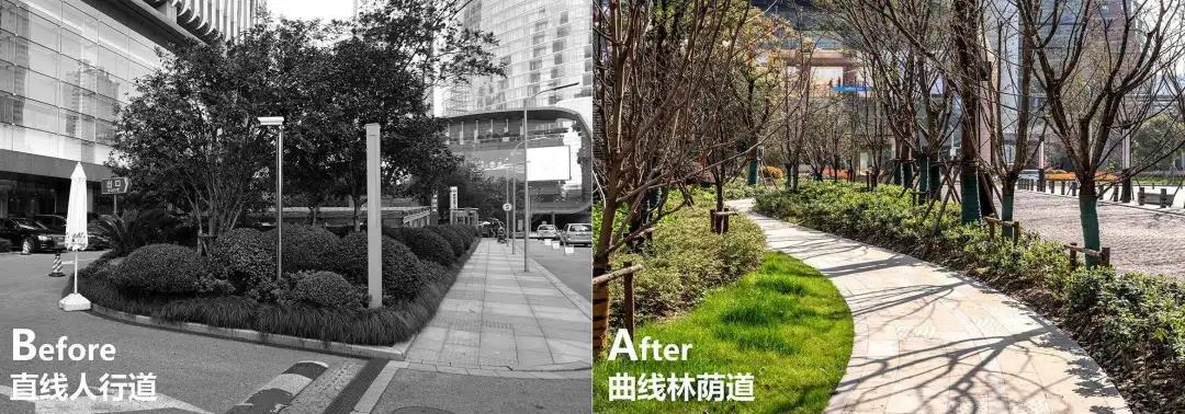 ▼改造前與后的太平金融大廈外人行林蔭道©選泉設(shè)計(jì)