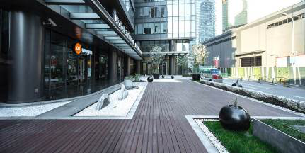 商務(wù)樓的一層一般有接待大廳以及一些休閑接待性質(zhì)的咖啡吧等,并且設(shè)有大型的落地窗,但由于大樓周邊的公共空間主要是一些防護(hù)綠地,導(dǎo)致大樓內(nèi)外的景觀沒有相互呼應(yīng)。