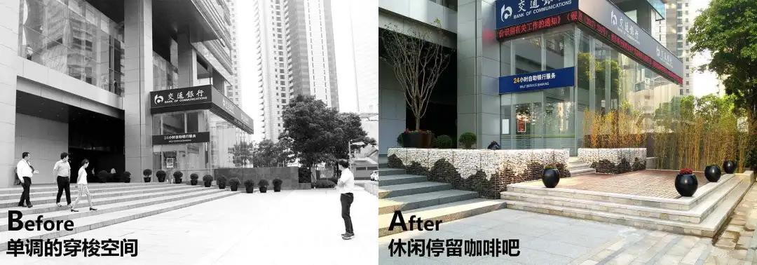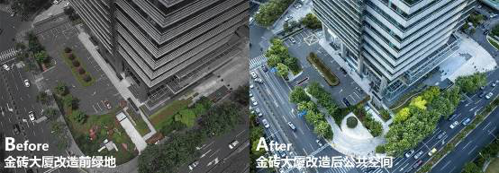 ▼改造前與后的金磚大廈口袋公園咖啡吧©選泉設(shè)計(jì)