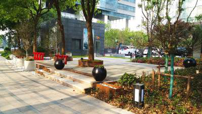 1、竣工圖和現(xiàn)場(chǎng)情況諸多不同。由于陸家嘴高樓林立,地下管網(wǎng)系統(tǒng)復(fù)雜,現(xiàn)場(chǎng)管線與管井的位置以及埋深和竣工圖有許多偏差,導(dǎo)致對(duì)應(yīng)位置的設(shè)計(jì)節(jié)點(diǎn)與喬木無法落地,因此在改造施工過程中,需要多次重復(fù)調(diào)整方案。