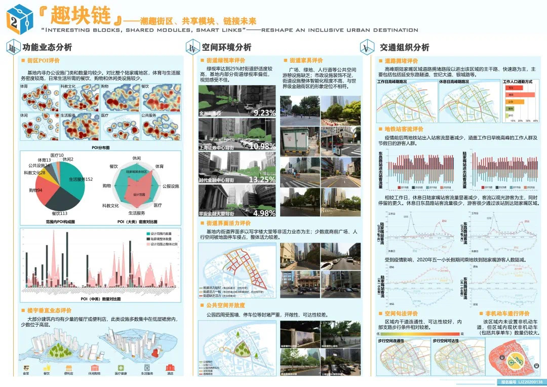 2020上海城市設計挑戰(zhàn)賽選取陸家嘴金融貿(mào)易區(qū)中心區(qū)(小陸家嘴)局部區(qū)域作為設計對象,以“更具國際競爭力的商務街區(qū)”為設計目標,從商務區(qū)功能活力提升、慢行空間品質(zhì)提升、多主體商務區(qū)更新機制探索和智慧街區(qū)規(guī)劃等方面入手,探索商務區(qū)的存量更新。挑戰(zhàn)賽以綜合應用大數(shù)據(jù)等信息技術支撐城市設計為導向,為商務區(qū)存量更新提供創(chuàng)新性設計思路。