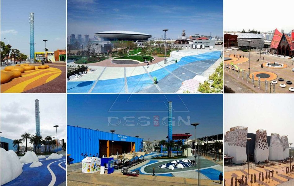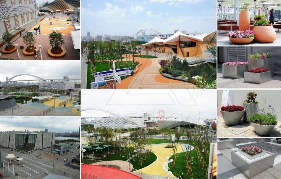 ???? 上海世博會園區(qū)規(guī)劃從一開始便把園區(qū)作為未來城市發(fā)展的有機(jī)成分,其總體布局統(tǒng)籌了辦博需求和后續(xù)開發(fā)利用,形成園區(qū)“一主多輔”的總體空間格局。其中,浦東園區(qū)會后將發(fā)展成為國際會展中心和文化演藝中心,除了“一軸四館”保留外,其余的240多個外國國家館、國際組織館將全部拆除,作為后續(xù)發(fā)展儲備區(qū)域,世博場地公共空間具有臨時性。因此,本著“勤儉辦博”原則,設(shè)計(jì)時將功能性與后續(xù)利用作了統(tǒng)一考慮,如倡導(dǎo)使用造價低廉,可循環(huán)回收材料;減少地面固定設(shè)施,盡量采用可移動的形式,已利于會后移走,進(jìn)行二次利用;設(shè)施小品的設(shè)計(jì)模數(shù)化、標(biāo)準(zhǔn)化、易于拆卸重組等。