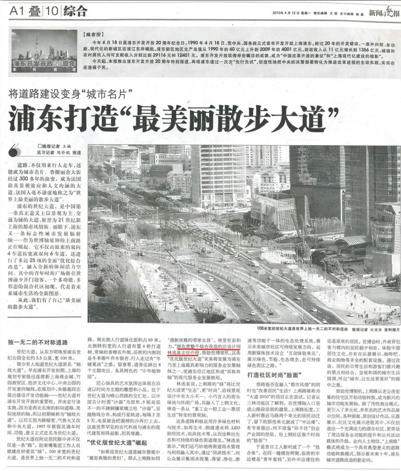 【新聞晚報(bào)20100412】浦東打造“最美麗散步大道”