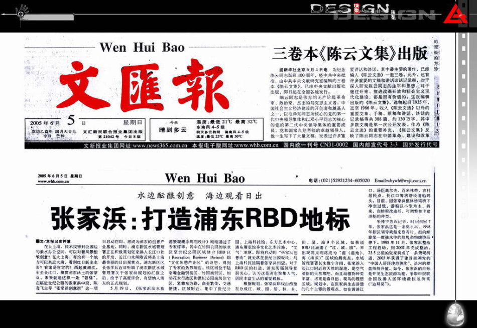 【文匯報2005-6-5】水邊釀創(chuàng)意 張家浜打造浦東RBD地標(biāo)