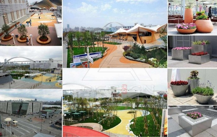 林選泉:設(shè)計(jì)伊始,我們就考慮到了世博會(huì)結(jié)束后的設(shè)施的拆卸和后續(xù)利用問題,盡可能使用造價(jià)低廉、可循環(huán)回收材料,減少地面固定設(shè)施,盡量采用可移動(dòng)的形式,比如花箱、座椅、直飲水、垃圾桶、臨時(shí)遮陽傘、滅蚊燈、地磚等,這些設(shè)施都進(jìn)行過模數(shù)化、標(biāo)準(zhǔn)化設(shè)計(jì),易于拆卸重組和可以回收利用。另外,采用采購,回購,租賃以及捐贈(zèng)相結(jié)合的方式,解決后續(xù)利用問題。