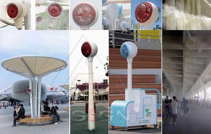 這些降溫設(shè)備與遮陽傘結(jié)合使用,使基于人體舒適度的“降溫”效果非常明顯。