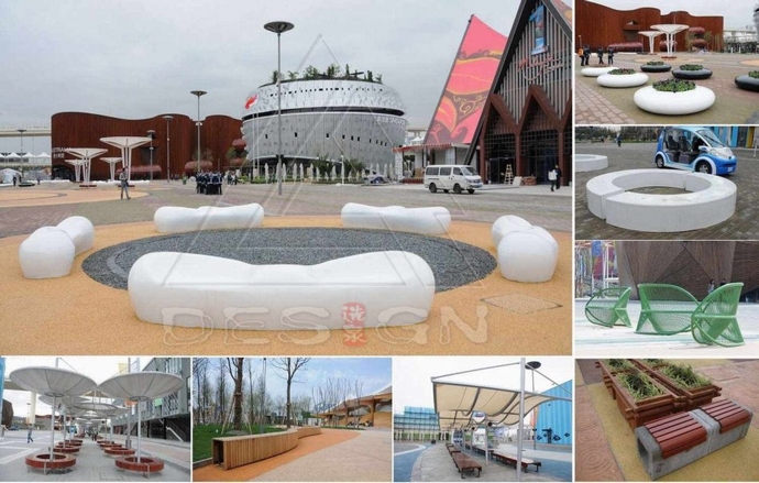 寧中意:世博期間,面對巨大的參觀人流,肯定要考慮游人的休憩,因此座椅的設(shè)置是免不了的。這些座椅是如何來配置的,又有哪些形式呢?