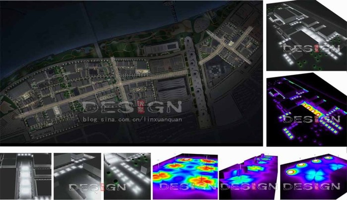 (圖5 夜景照明平面—針對(duì)照明指標(biāo)運(yùn)用照明專(zhuān)業(yè)軟件DIALUX模擬測(cè)算效果)