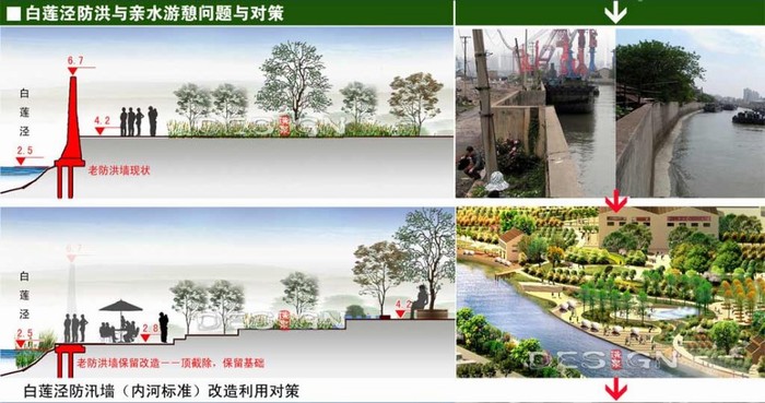 圖6   白蓮涇現(xiàn)狀防汛墻改造利用對(duì)策