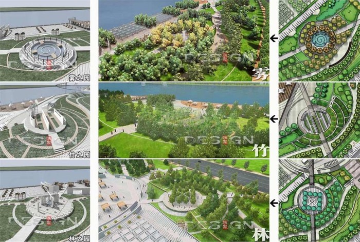 活力的濱水區(qū)需要多功能有機(jī)混合,在濱江帶4.7米最高通航水位以上構(gòu)筑以“霧、林、竹”為主題的體驗(yàn)單元,形成霧之園、林之園、竹之園,形成節(jié)點(diǎn)停留空間,滿足人流休閑、游憩需求(圖8)。