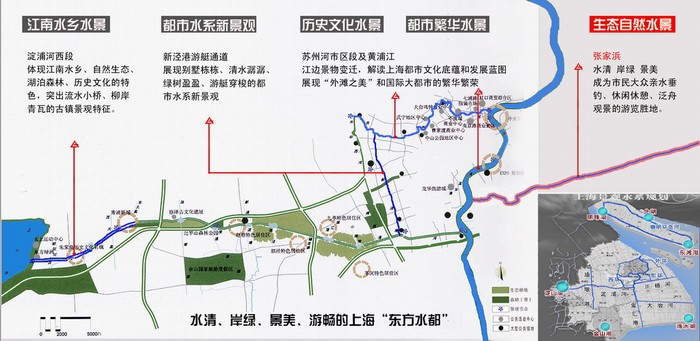 目前,張家浜是上海市惟一的一條較為完整的景觀河道。從黃浦江到長江口,從城市化高度發(fā)展地區(qū)到農(nóng)村,她濃縮著浦東的過去、現(xiàn)在和未來,印證著浦東開發(fā)開放發(fā)展的歷程。對(duì)于浦東而言,張家浜不再僅僅是一條只有“綠量”的綠色河道,她還應(yīng)該是一條歷史文化廊道。