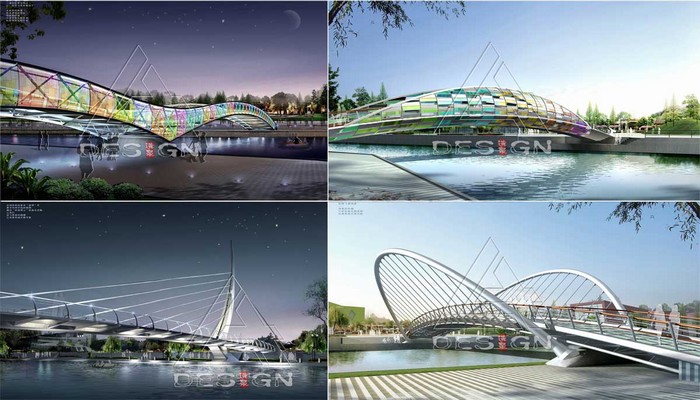 先確定張家浜橋梁景觀設(shè)計(jì)總體理念以及各區(qū)段的橋梁風(fēng)格:突出西段橋梁的現(xiàn)代文化氣息,中西段的自然純樸氣息,然后在工程和景觀統(tǒng)一的前提下,優(yōu)選橋型,設(shè)計(jì)對(duì)應(yīng)的橋梁主體和橋梁附屬景觀設(shè)計(jì)系統(tǒng),最后進(jìn)行張家浜橋梁色彩和橋梁夜景專項(xiàng)設(shè)計(jì),同時(shí)對(duì)橋梁群建立完善的管理、維護(hù)、宣傳、運(yùn)營等制度。