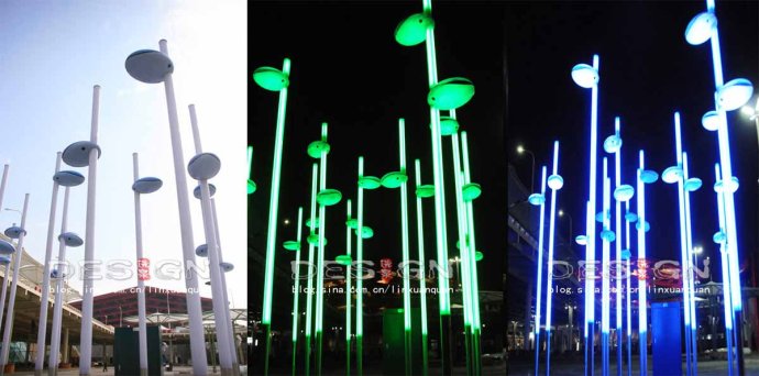 世博夜景的精彩不僅僅依靠光輝璀璨的“一軸四館”,周邊地塊照明的積極襯托與交相呼應(yīng)同樣可為游客夜場(chǎng)游覽印象作出自身貢獻(xiàn);設(shè)計(jì)意圖從夜景照明角度詮釋“生態(tài)世博”的理念,于“隱”處體現(xiàn)高效節(jié)能光源的選用,體現(xiàn)對(duì)動(dòng)植物影響的避免,對(duì)散光眩光污染的積極控制。