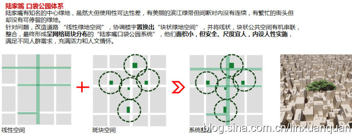 置換出“塊狀綠地空間”,形成陸家嘴小口袋公園統(tǒng)”,