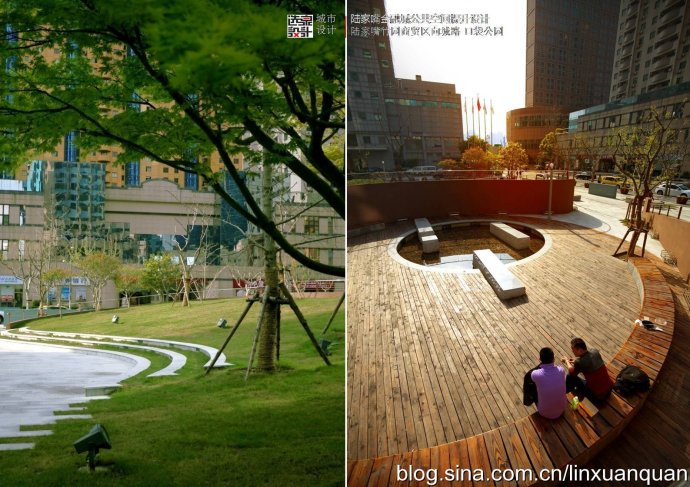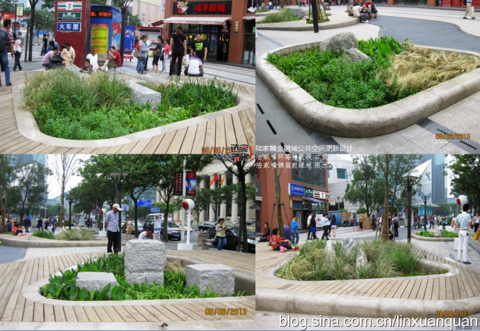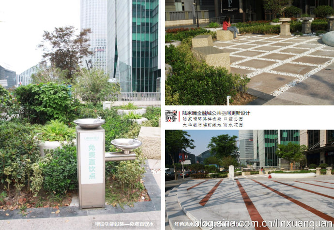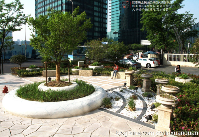 2011年更新建成的陸家嘴東方明珠前的景庭綠地  休閑雨水小花園