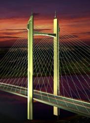 夜景照明中表現(xiàn)斜拉橋構造上的藝術美,用光強調結構特性,如: 橋塔的高聳挺拔,夜景照明中體現(xiàn)其力量緊張感,拉索的秀麗柔美,蘊含著“心理誘引力線 ”,夜景中體現(xiàn)輕紗般的透明感。