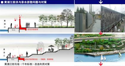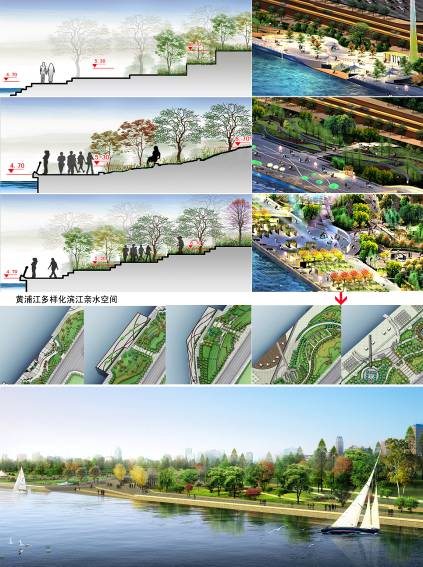 圖5 黃浦江防洪與親水游憩空間處理對(duì)策 (4)主要休閑空間:在