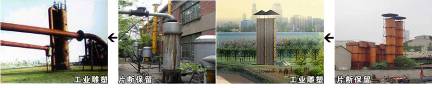 特征,常具有些極具特征的工業(yè)構(gòu)筑物,如工業(yè)時(shí)代的大煙囪、變電站里的一些工業(yè)構(gòu)件等可以保留,經(jīng)過藝術(shù)加工成工業(yè)雕塑。