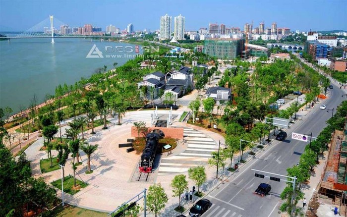 濱江公園共分為老碼頭文化區(qū)、公園景觀區(qū)、江灘生態(tài)區(qū)三個功能區(qū),其中最具特色與文脈表達(dá)的是:老碼頭風(fēng)情街、火車頭廣場、鷹潭風(fēng)情園