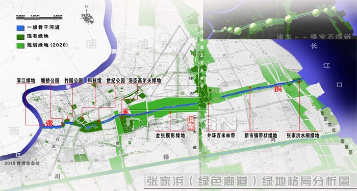 根據(jù)張家浜3段規(guī)劃的不同要求以及現(xiàn)實條件,綠線控制分近期和遠(yuǎn)期。