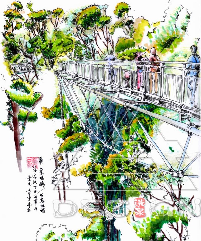近期需改造和設(shè)計的橋梁有:楊高路橋、錦繡路橋、創(chuàng)意街步行橋(圖10),以及世紀(jì)公園內(nèi)幾座低凈空人行橋。如將世紀(jì)公園7號門橋梁改建成具有海派文化、通透輕巧的新型現(xiàn)代廊橋,使其集休閑、觀光、餐飲、通行為一體。